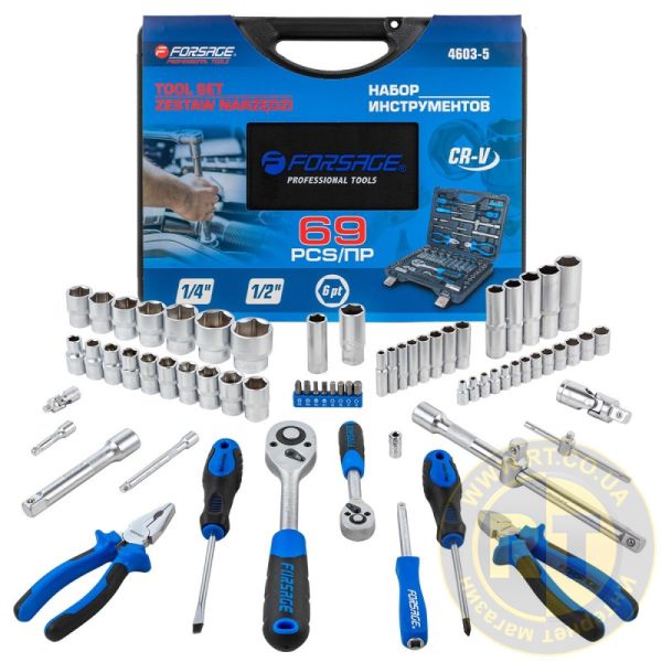 Набір інструментів 69 предметів, 1/4", 1/2", (6гр.) (4-32мм) FORSAGE F-4603-5