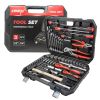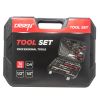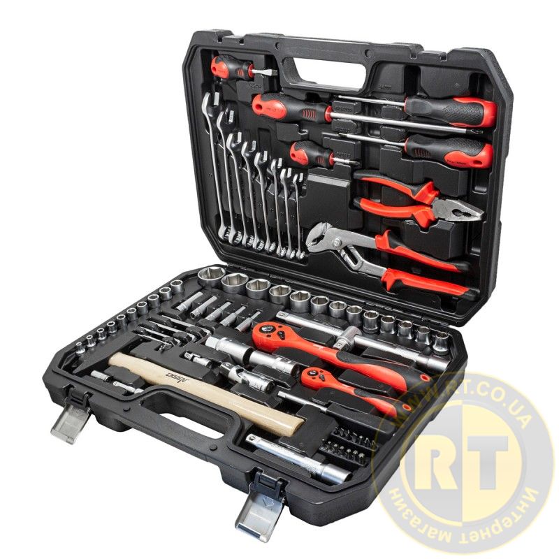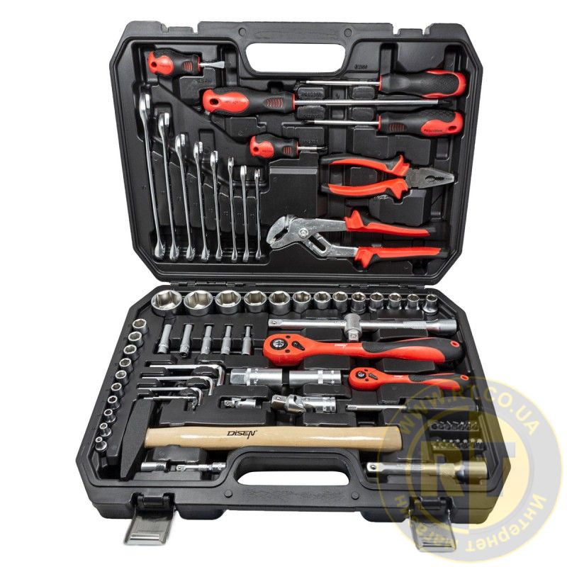 Набір інструментів DISEN DI-1076 , 1/2 та 1/4 дюйма, CrV, складається з 76 предметів у пластиковому кейсі та призначений для виконання слюсарно-монтажних робіт. Включає інструменти та насадки для роботи з різьбовими кріпленнями, а також молоток, пасатижі та переставні кліщі, що розширюють можливості використання набору. Універсальний комплект буде корисний при проведенні авторемонту в гаражі або поїздці, а також знадобиться вдома або на дачі.