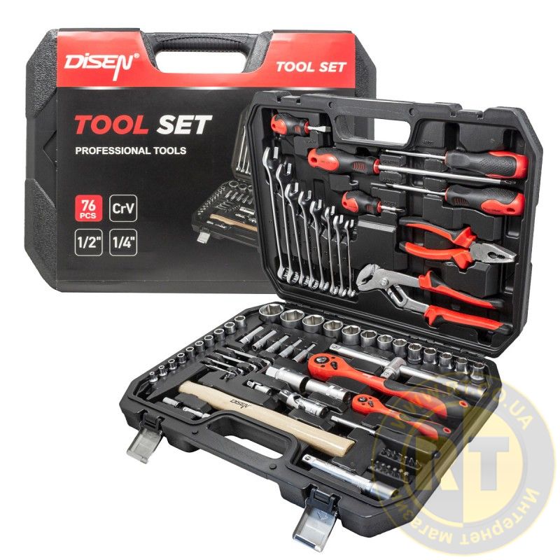Набір інструментів 76пр.1/4"1/2"(6гр.)(4-32мм) DISEN DI-1076