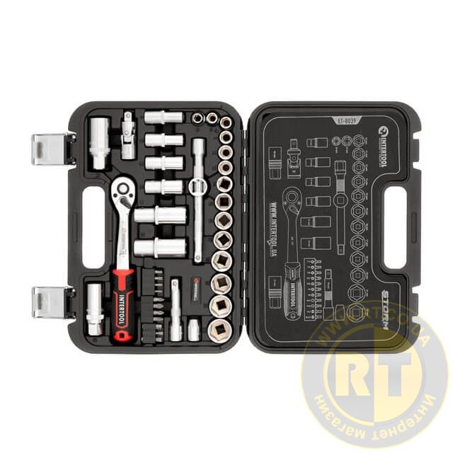 Набір інструментів STORM, 3/8", Cr-V, 39 од., головки: 8-22 мм, біти 11 од., подовж. головки: 8-19 мм, кейс INTERTOOL ET-8039