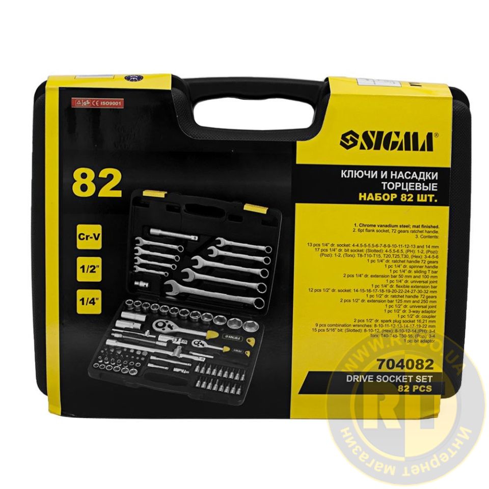 Набір торцевих насадок і біт 1/4", 1/2" 82шт CrV Taiwan SIGMA 6001021