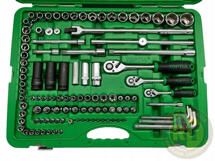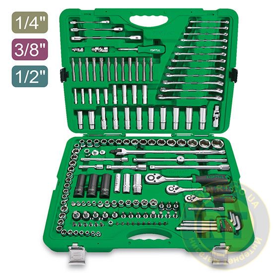 Професійний набір інструменту комбінований 1/4", 3/8", 1/2" 163 од. TOPTUL GCAI163R