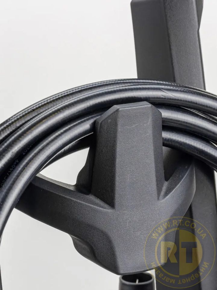 - Довгий шланг (6 м) та шнур живлення (5 м) забезпечують свободу пересування під час роботи.