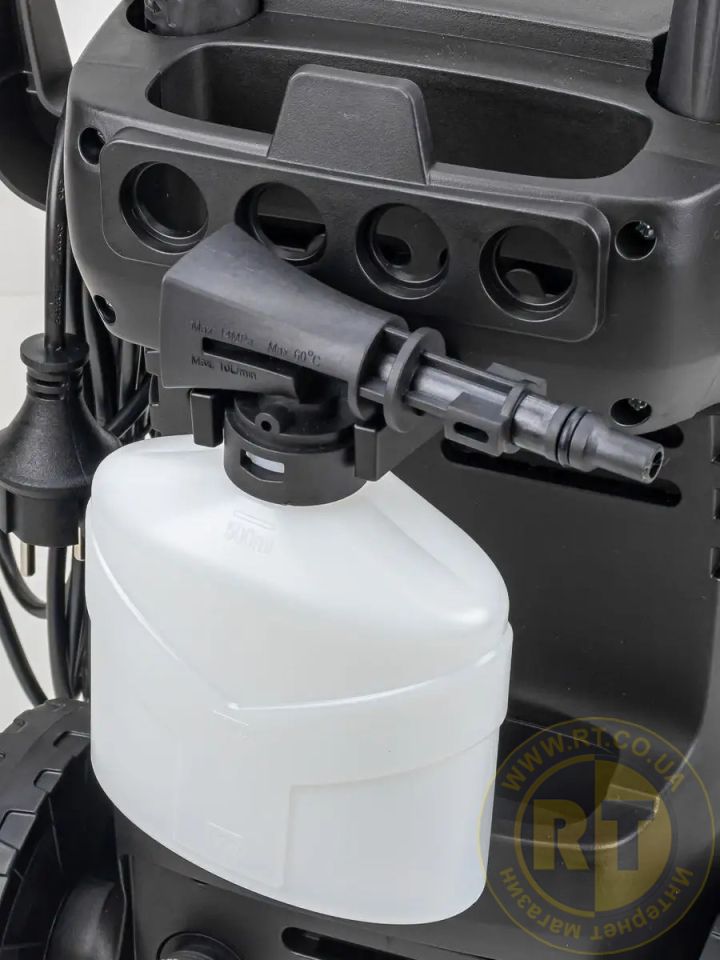 - Генератор піни в комплекті дозволяє створювати багату піну для більш ефективного очищення.