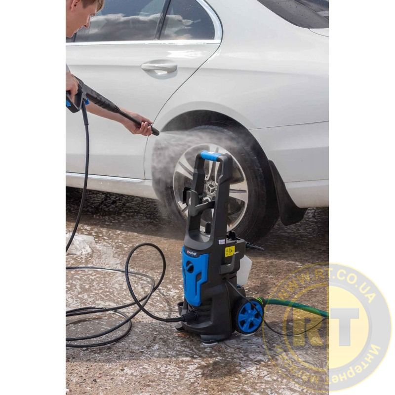 - Колеса та зручна ручка забезпечують легке переміщення мийки.
