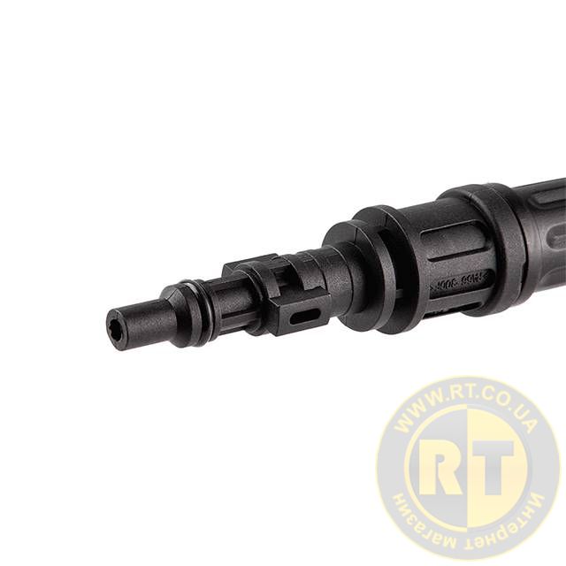 Щітка виготовлена з міцного пластику, що забезпечує тривалу роботу та стійкість до пошкоджень. Насадку легко під'єднати до пістолета мийки завдяки функції Quick Connect (швидке з'єднання). Невеликі габарити та мала вага насадки не втомлюють вас під час роботи та не перевантажують руки.