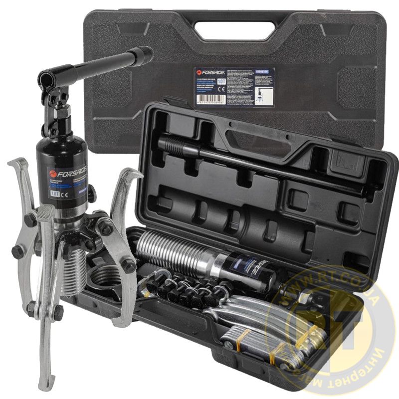 Гідравлічний переставний знімач з трьома лапами Forsage F-6590610H , що має вантажопідйомність 10 тонн (10000 кг), є незамінним інструментом для ефективного і безпечного зняття різних деталей, таких як підшипники, зубчасті колеса, колеса, ремені, ремінні шківи, втулки.
