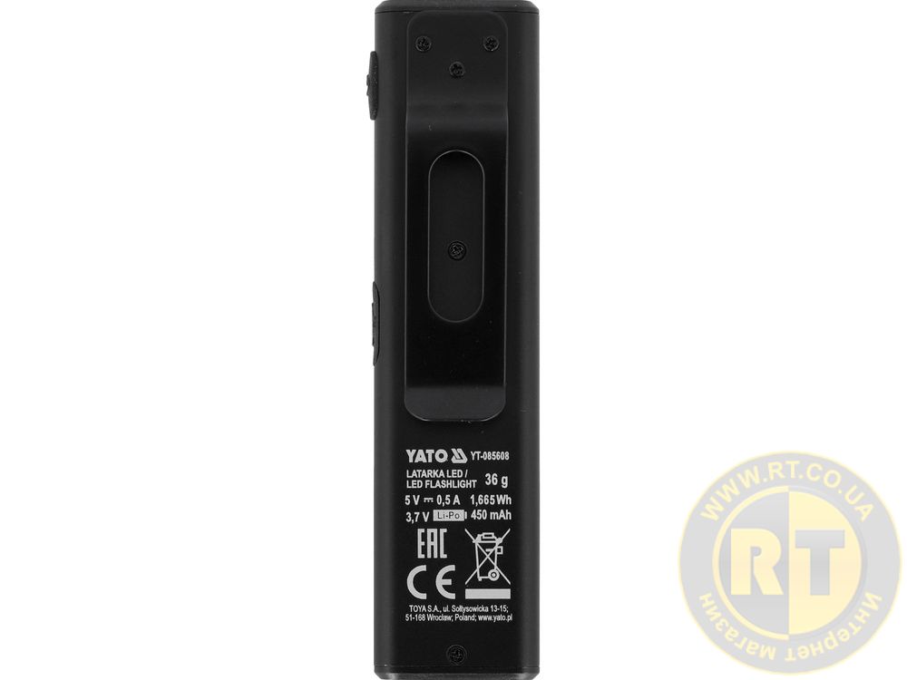 Ліхтар-міні діодний тонкий від акумул. Li-Po 3.7 V 450 mA, освітл.- 500/300/100/30 Lm 8 режі Yato YT-085608