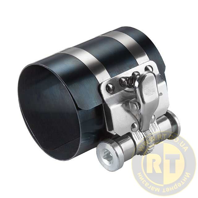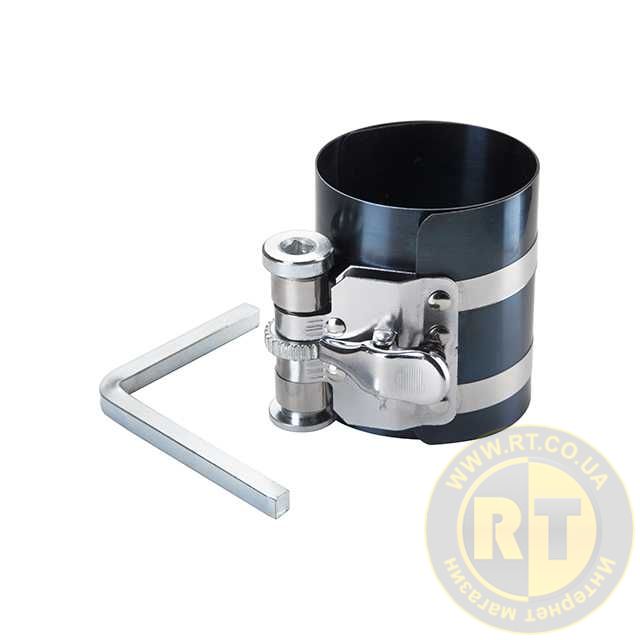 Інструмент забезпечує ідеальну посадку на поршень та надійну стопорну дію для стиснення кілець з можливістю встановлення поршнів у циліндри без перекручування чи пошкодження деталей. Стяжка виготовлена зі сталі для максимальної міцності та довговічності, стійка до корозії.