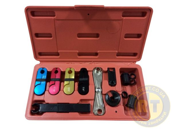 Набір знімачів використовується для демонтажу трубок паливної системи, системи кондиціювання, паливних шлангів, трубок підведення олії в АКПП та ін.