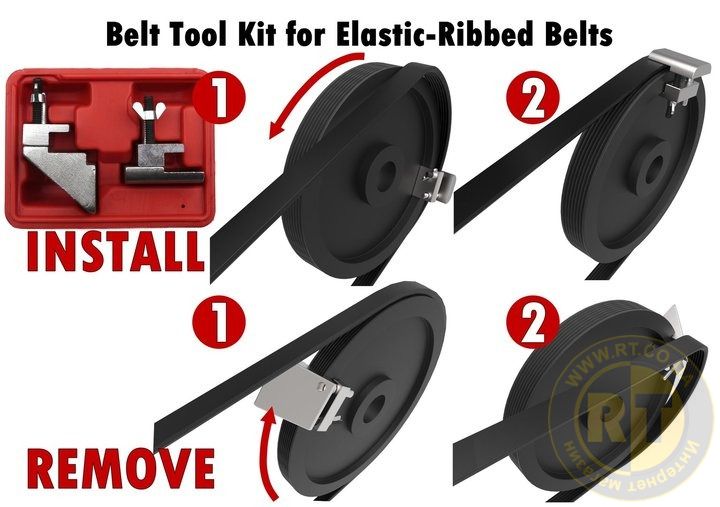 - Швидка та легка робота: Інструменти, що входять до набору, дозволяють швидко та легко встановлювати та знімати ремені, заощаджуючи час та зусилля.