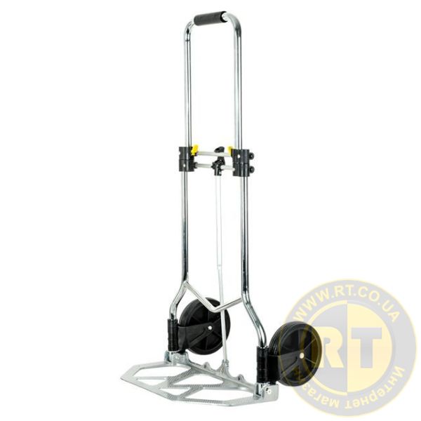 Візок виготовлений зі сталі, служитиме вам довго та надійно. У розкладеному стані ручка зручна за висотою (1090 мм). Фіксується замками як в складеному, так і в розкладеному вигляді. Відкидна алюмінієва платформа з габаритами 490*280 мм дозволяє швидко підхоплювати вантаж. Платформа міцна, не гнеться та не деформується завдяки ребрам жорсткості, рифленій поверхні та загнутому опорному краю.