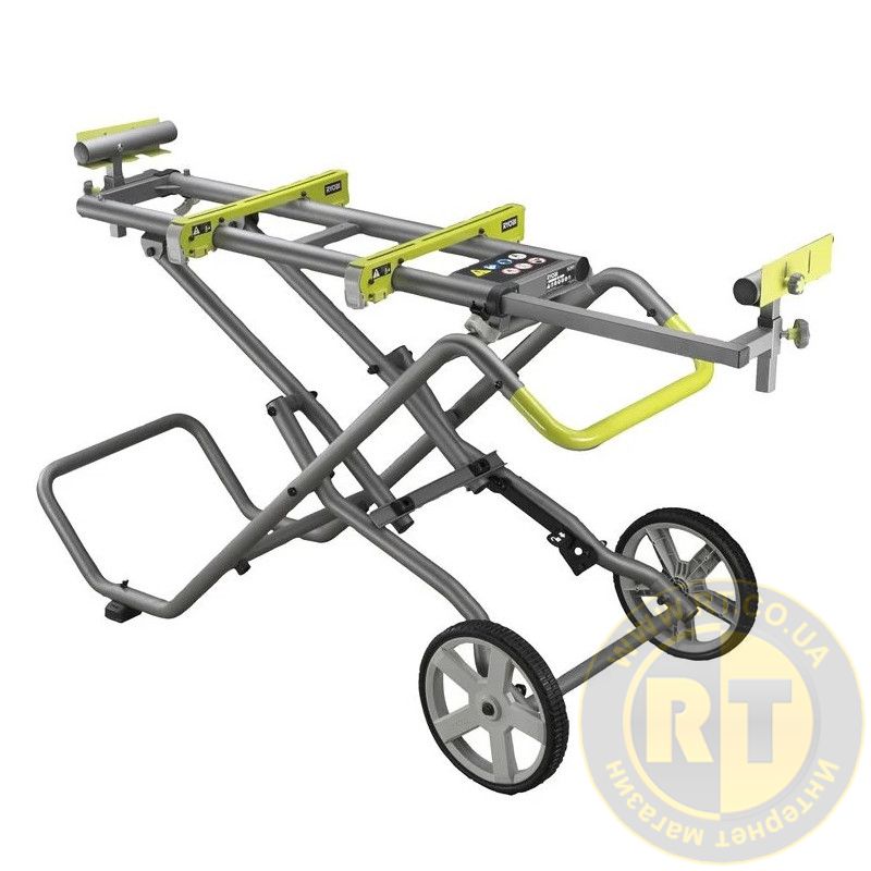 Станина для торцювальної пилки RYOBI RLSW01 - універсальний складний стіл-підставка для торцювальних пилок та іншого обладнання. Забезпечує стабільність, зручність у роботі та легке транспортування завдяки міцній конструкції та вбудованим колесам.