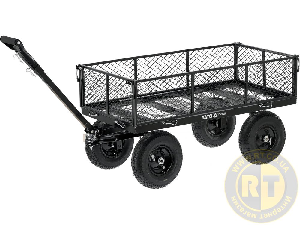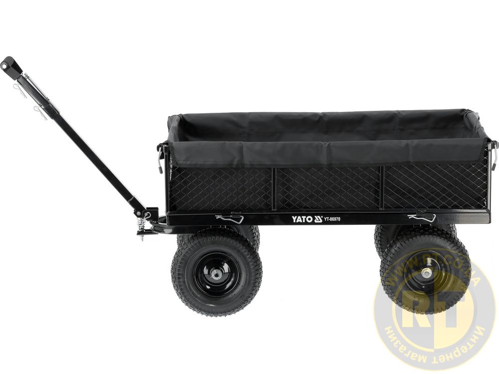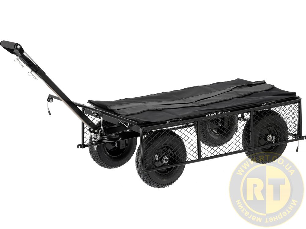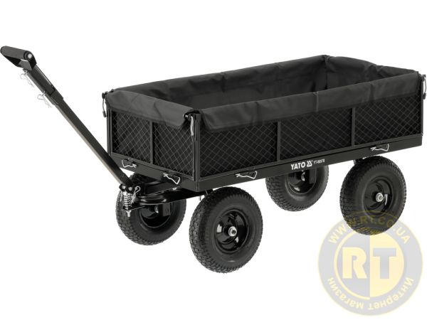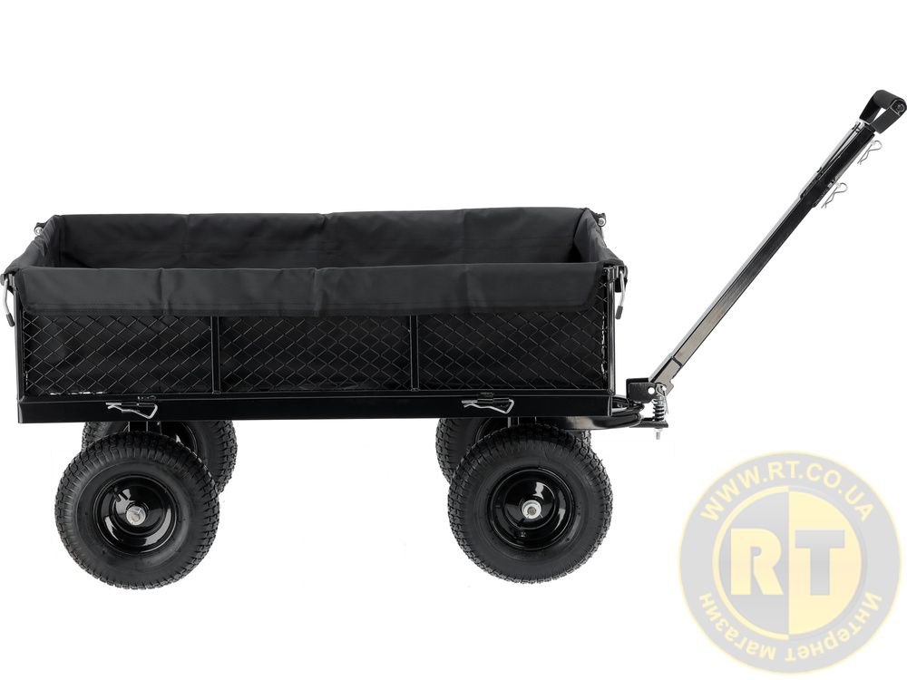- Спеціальний дизайн канави дозволяє прикріпити візок до садового обладнання, таким як трактори, виступаючи як трейлер.