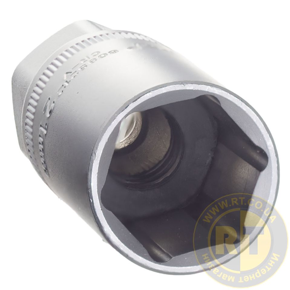 Головка має 6-гранний зів під свічку, посадкове місце для приєднувального квадрата 1/2" та зовнішній 6-гранний профіль під гайкові ключі або інші торцеві головки.