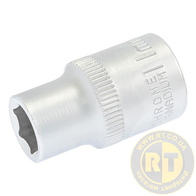 Торцева головка 6-гранна розміром 11 мм та довжиною 40 мм призначена для роботи з болтами та гайками діаметром 11 мм. Виготовлена з високоякісної хром-ванадієвої сталі (CrV), що забезпечує довговічність та стійкість до зношування під час експлуатації.
