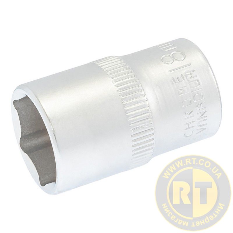 Торцева головка з шестигранним профілем розміром 18 мм та довжиною 40 мм призначена для роботи з болтами та гайками відповідного діаметру. Виготовлена з високоякісної хром-ванадієвої сталі (CrV), що забезпечує високу міцність, зносостійкість та тривалу експлуатацію в умовах інтенсивного використання.
