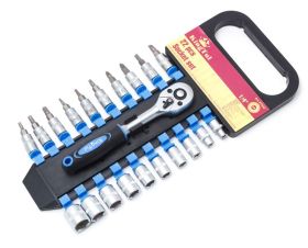 Набір головок і головок-біт з тріскачкою у пласт. тримачі 22 предмети 1/4" (5-14мм, 6-гран.) KINGTUL KT422 FORSAGE 2797
