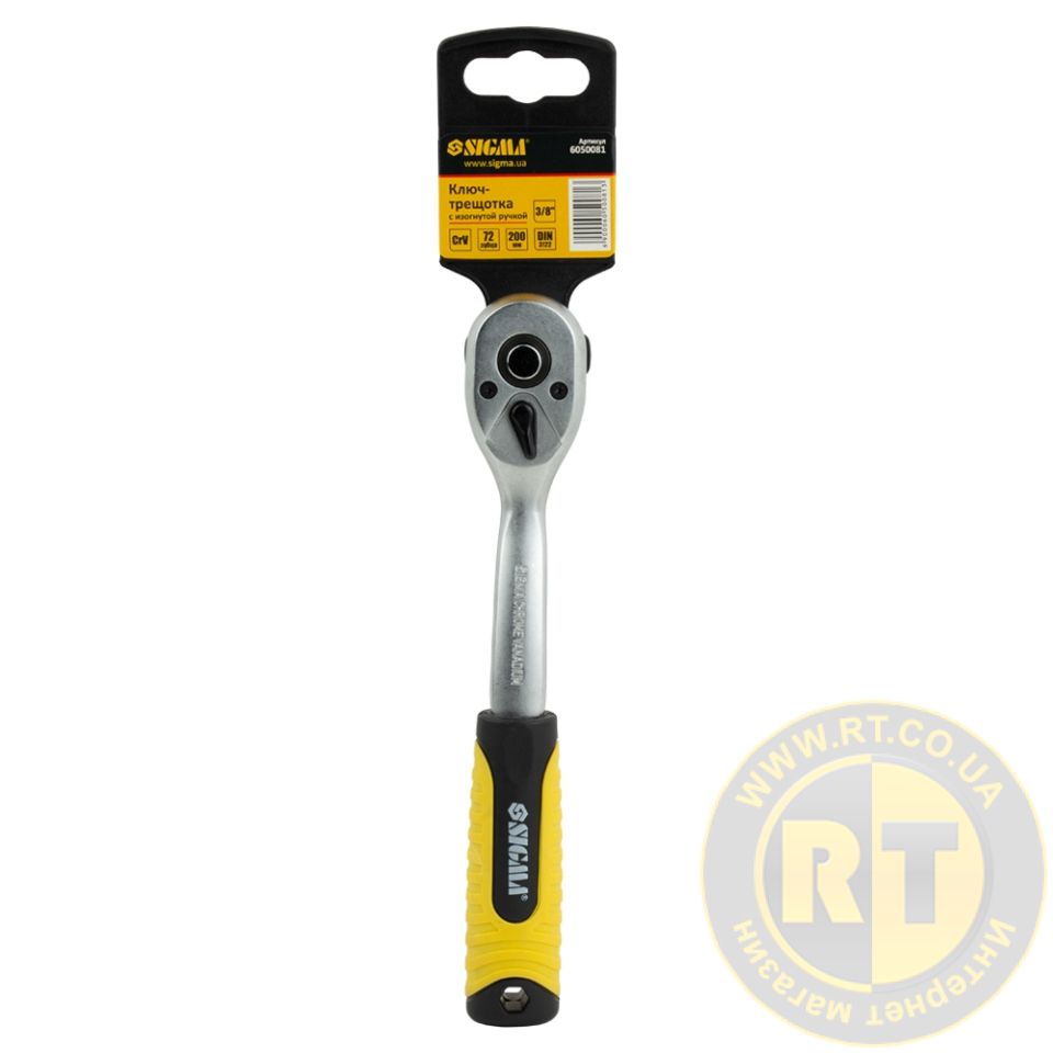 Ключ-тріскачка з вигнутою ручкою 3/8" 200мм 72T CrV SIGMA 6050081