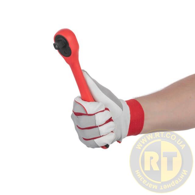 Тріскачка повністю вкрита захисним шаром поліпропілену, що гарантує надійне зчеплення навіть з брудними або забрудненими в мастилі руками. Легка, міцна, бензомаслостійка ручка зручно лежить у долоні під час роботи.