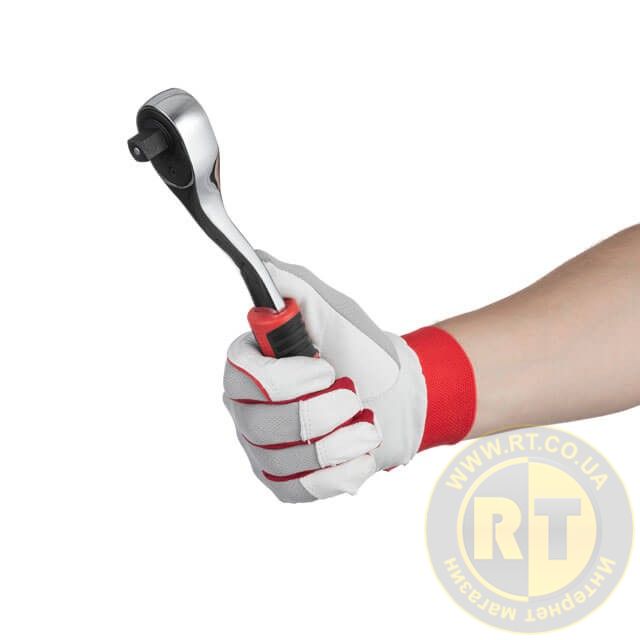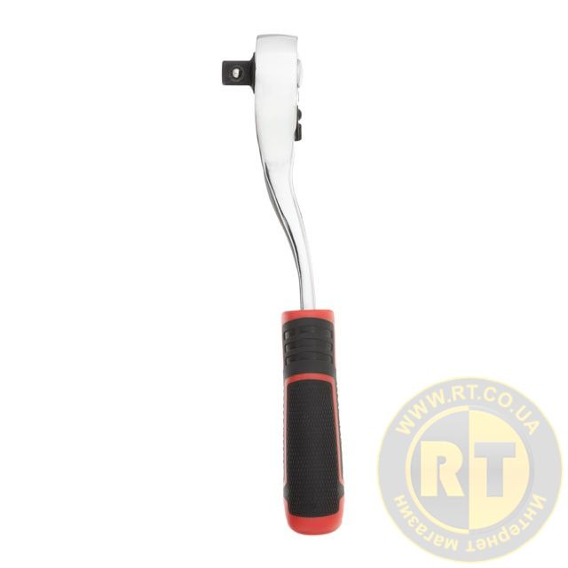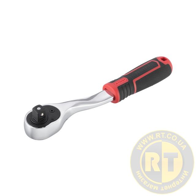 Трикомпонентна ручка з TPR гумою гарантує надійне зчеплення навіть з брудними або забрудненими в мастилі руками. Легка, міцна тріскачка зручно лежить у долоні під час роботи та не вислизає.