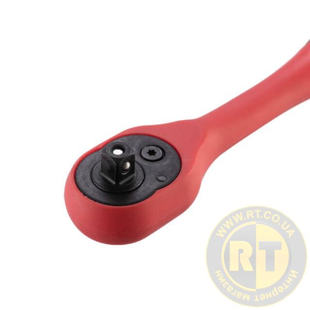 Кнопка на верхній частині тріскачки приводить фіксуючу кульку в дію і ви легко можете міняти головки, при цьому насадки міцно сидять на посадковому квадраті та не спадають. Тріскачка з храповим механізмом має зручний перемикач напрямку руху.