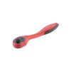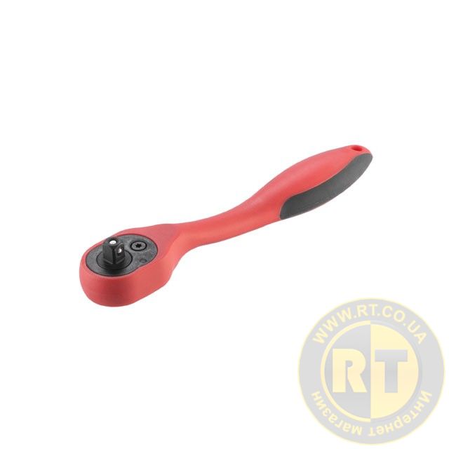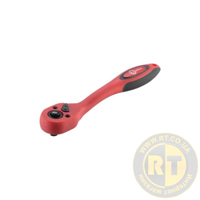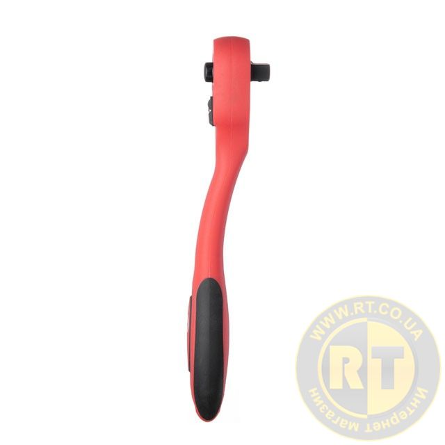 Кнопка на верхній частині тріскачки приводить фіксуючу кульку в дію і ви легко можете міняти головки, при цьому насадки міцно сидять на посадковому квадраті та не спадають. Тріскачка з храповим механізмом має зручний перемикач напрямку руху. Вигин ручки дозволяє не зачіпати поверхні інших деталей, які можуть опинитися під нею, що дуже зручно для роботи в обмеженому просторі.