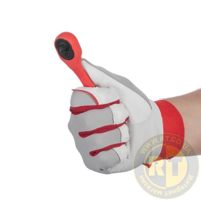 Тріскачка повністю вкрита захисним шаром поліпропілену, що гарантує надійне зчеплення навіть з брудними або забрудненими в мастилі руками. Легка, міцна, бензомаслостійка ручка зручно лежить у долоні під час роботи.