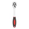 Двокомпонентна ручка з гумовими вставками гарантує надійне зчеплення навіть із брудними або забрудненими в мастилі руками. Міцна, зручна тріскачка комфортно лежить у долоні під час роботи