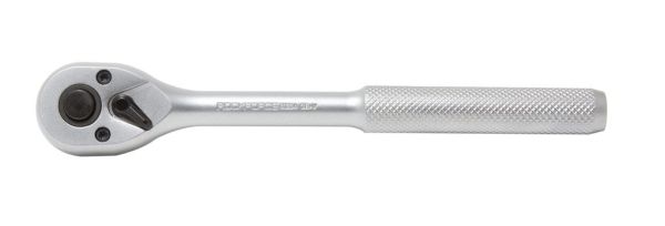 Тріскачка ROCKFORCE RF-80244 зі сталі CrV, розміром 1/2 дюйма, з перемикачем, - ручний інструмент для монтажу та демонтажу різьбових з'єднань. Сумісний з торцевими головками, що мають посадкове гніздо 1/2 дюйми. Оснащений храповим механізмом, що полегшує роботу у важкодоступних місцях. Інструмент застосовується для ремонту техніки, автомобілів, також використовують у побуті.