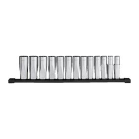 Набір головок торцевих хромованих ⅜″ MILWAUKEE, (12 гран.), подовжені, планка (12шт)