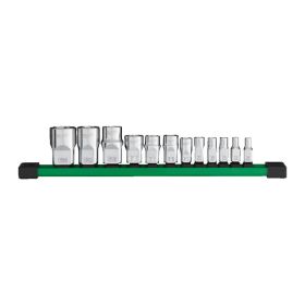 Набір головок торцевих хромованих ⅜″ MILWAUKEE, (зірка 12 гран.), на планці (12шт)