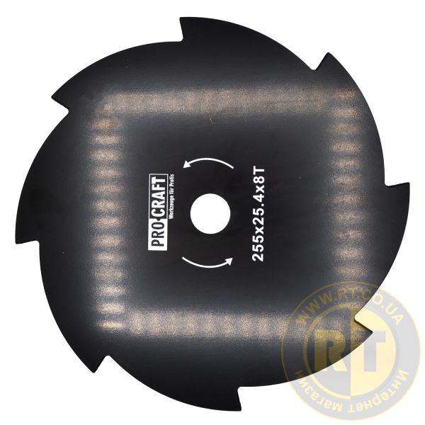 - Універсальність використання: ніж 8T Procraft, купити який ви можете у нас, підходить для більшості моделей тримерів та мотокос з діаметром посадкового отвору 25,4 мм, що робить його зручним для використання з різними моделями обладнання.