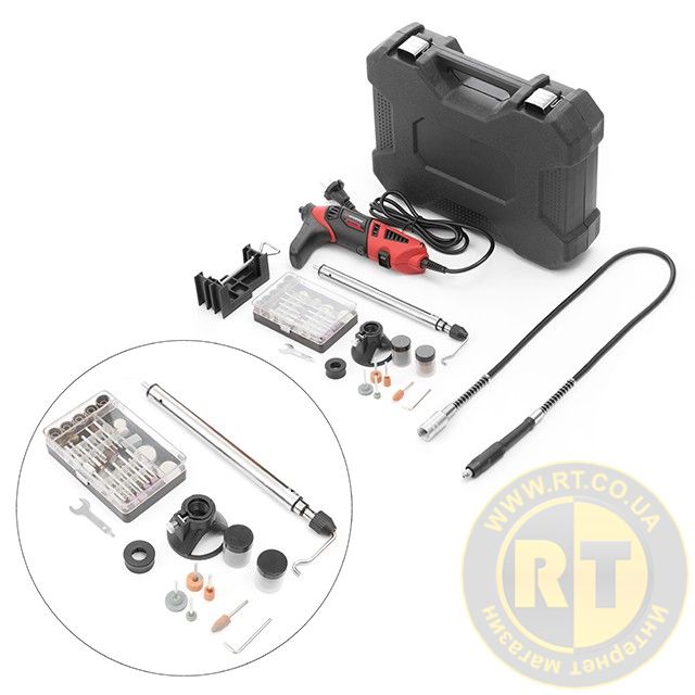 Шліфмашина пряма (гравер) 170 Вт, 8000-35000 об/хв, 120 од., кейс, стійка, гнучкий вал, насадка для фрезерування INTERTOOL WT-0516