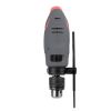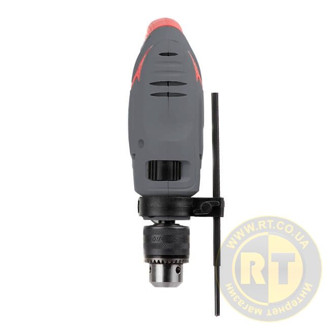 Потужність двигуна 550 Вт розвиває швидкість обертання до 2800 об/хв. - це дозволяє свердлити отвори у різних матеріалах: дерево – 20 мм, сталь – 10 мм, цегла – 13 мм. На дриль встановлений ключовий патрон, він надійно фіксує свердла з діаметром хвостовика від 1.5 до 13 мм та не дає їм прокручуватися навіть в ударному режимі.