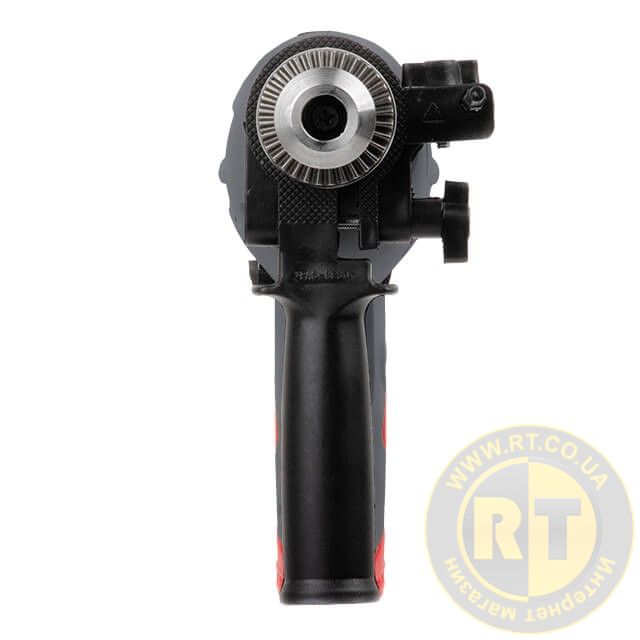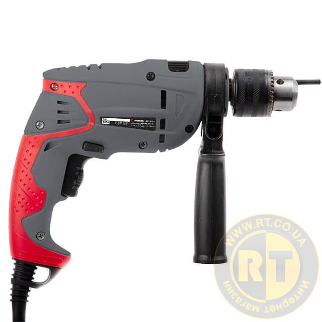 Зручна основна ручка з гумовими м'якими накладками для кращої фіксації в руці. Кнопки управління зручно розташовані під пальцями, а збоку є кнопка перемикання режиму свердління: з ударом та без удару. У комплекті передбачена додаткова ручка, вона знімається, має гвинтовий затискач, це дозволяє працювати обома руками, а також фіксує обмежувач глибини свердління.