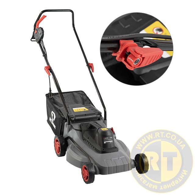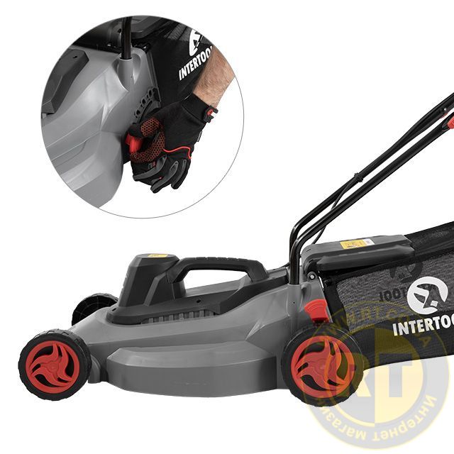 Газонокосарка електрична, 1,8 кВт, 3000 об/хв, ширина зрізання 400 мм, висота зрізання 25-75 мм, контейнер 35 л INTERTOOL DT-2262