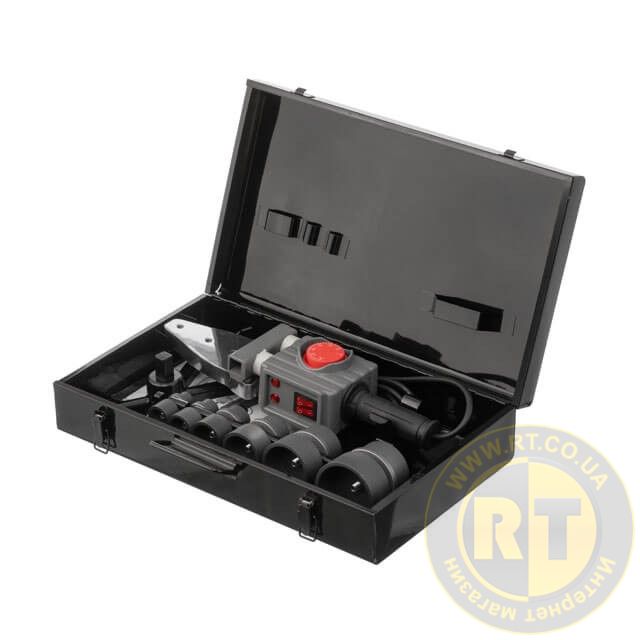 Паяльник для пластикових труб, 0,85/1,85 кВт, 0-300°C, насадки 20, 25, 32, 40, 50, 63 мм, металевий кейс INTERTOOL RT-2112