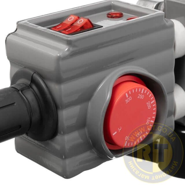 Вбудований регулятор температури (термостат) зі шкалою від 50°C до 300°C, дозволяє задати точне значення необхідної температури і підтримує її під час пайки.