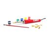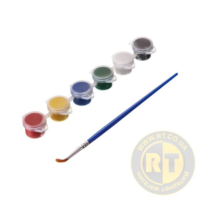 До набору також входить пензлик, фарби шести кольорів і сім змінних насадок: пряма, коса, конічна, тонка, три види фігурних.