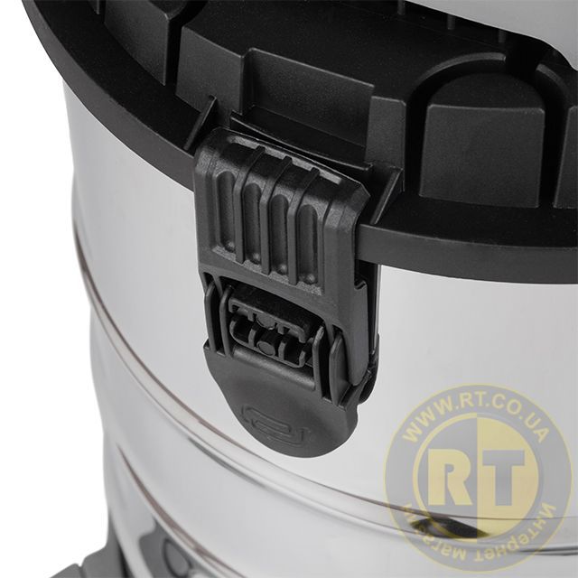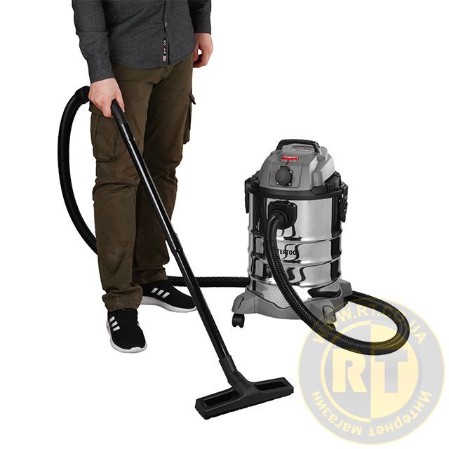 Пилосос оснащений міцним баком із нержавійної сталі марки 410 — він стійкий до механічних пошкоджень і корозії, а спеціальні ребра жорсткості надають додаткову міцність і стабільність під час експлуатації. Всередині встановлений двигун з мідною обмоткою, що гарантує тривалий строк служби і стабільну роботу навіть за високих навантажень.