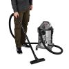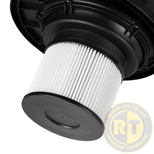 Пилосос працює від звичайної розетки і оснащений продуктивним двигуном потужністю 1400 Вт. Ефективно впорається з прибиранням будь-якого будівельного сміття, а робоче розрідження становить 17 кПа. Місткого бака об'ємом 30 літрів достатньо, щоб не відволікатися на постійне очищення. Завдяки функції видування пилосос допоможе швидко очистити робочі поверхні, продути інструмент чи прибрати сміття з важкодоступних кутів.