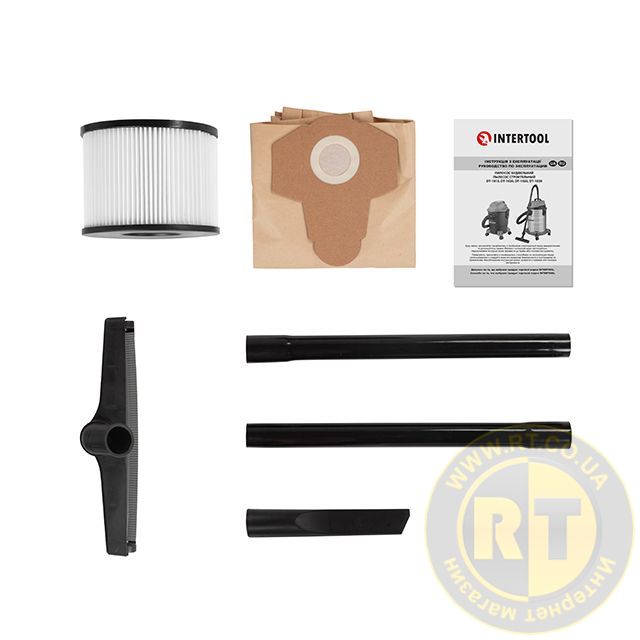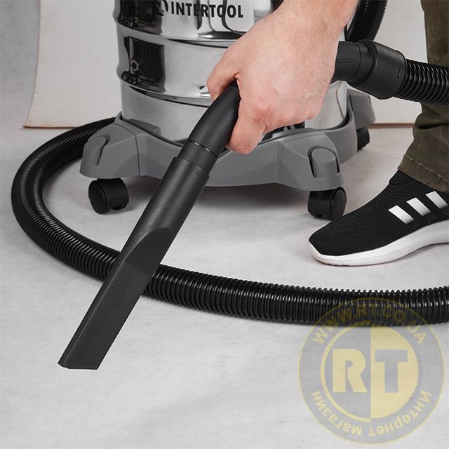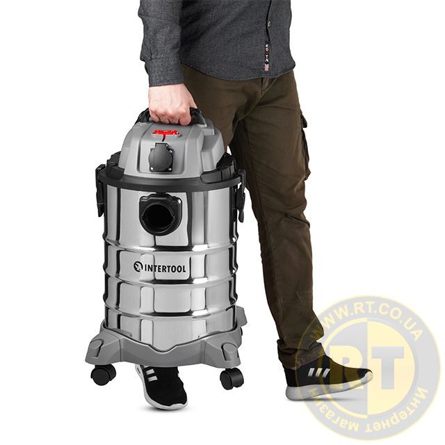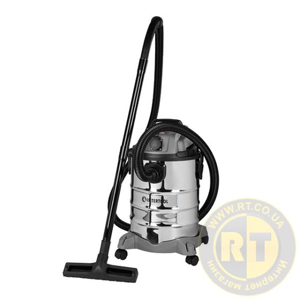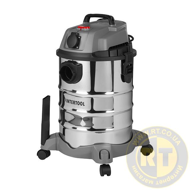 Пилосос будівельний, 1,4 кВт, >17 кПа, бак 30 л нержавіюча сталь 410, розетка, HEPA фільтр, шланг 3 м INTERTOOL DT-1030