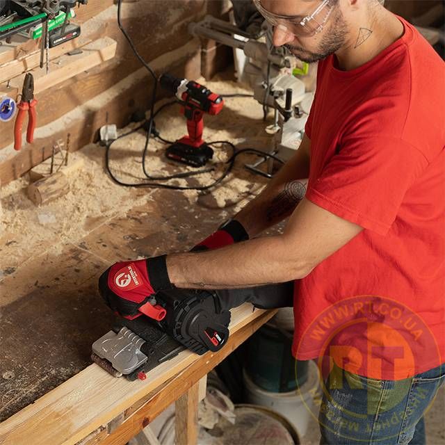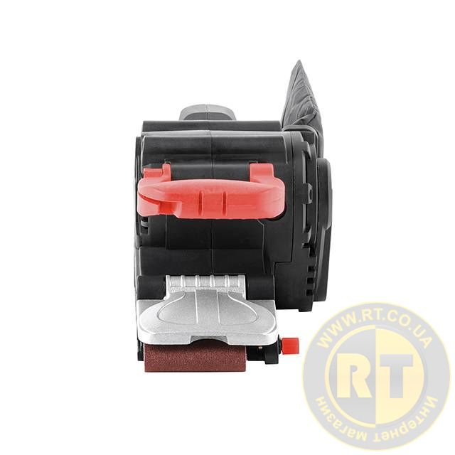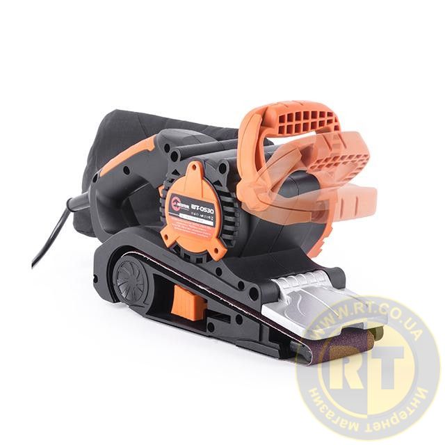 У цієї стрічкової шліфувальної машини центр маси розташований досить низько, тому в процесі роботи не потрібно докладати особливих зусиль. Простота та зручність в роботі вигідно вирізняють дану шліфувальну машину. Прогумована рукоятка шліфувальної машини WT-0530 запобігає ковзанню рук оператора.
