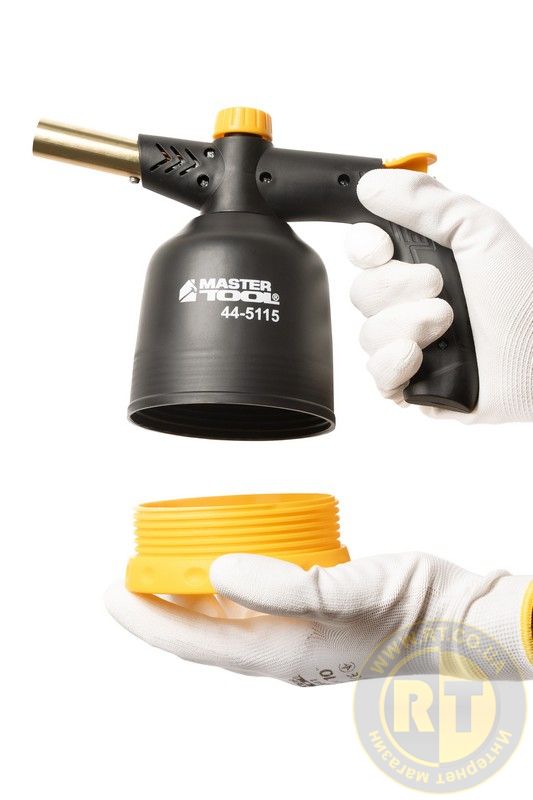 Лампа газова паяльна п'єзопідпал/обертання 360° Ø 20.2 мм/1300°С 1.7 кВт 123 г/година MASTERTOOL 44-5115