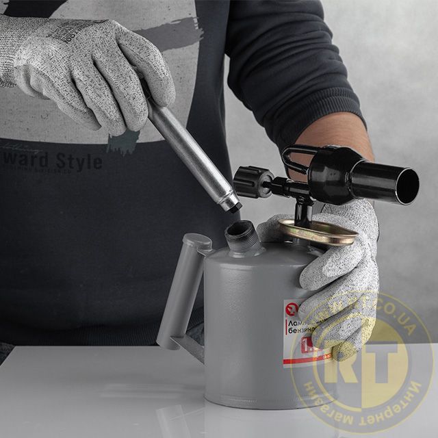 Цілісний металевий корпус захищає резервуар та забезпечує стабільну роботу інструмента, підвищує безпеку та збільшує строк служби. Широка ручка на корпусі дозволяє зручно працювати пальником.