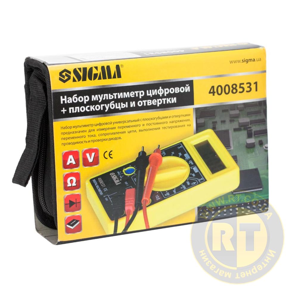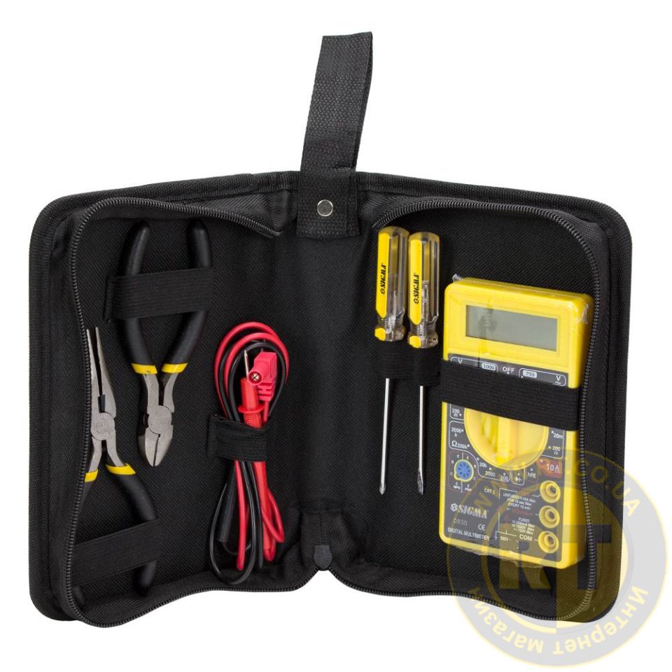 Набір мультиметр цифровий + плоскогубці та викрутки (тканинний чохол) SIGMA 4008531