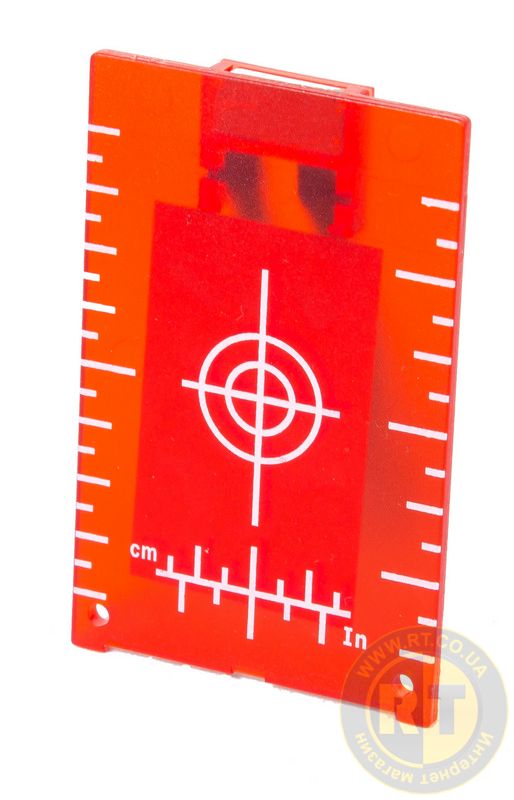 Мішень є корисним аксесуаром для підвищення точності вимірювань при розмітці, монтажі та оздоблювальних роботах з лазерними рівнями. • розміри: 65×100 мм – оптимальні для точної видимості лазерного променя