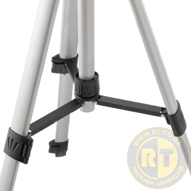 Штатив виготовлений з міцного алюмінієвого сплаву з пластиковими елементами - це робить його легким та забезпечує зручність при транспортуванні. Має три секції, які можуть фіксуватись як разом, так і окремо. При цьому штатив складається до максимально компактних розмірів з мінімальною вистою 650 мм. Максимальна висота з піднятою колоною та головкою для рівня становить 1150 мм.