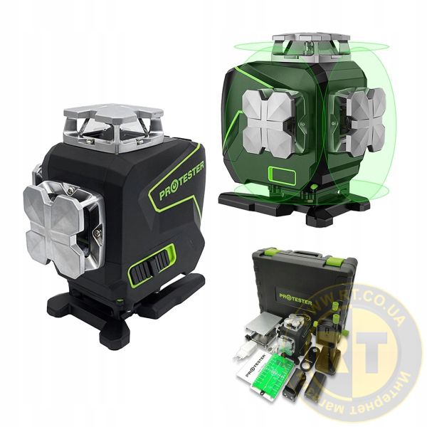 PROTESTER LL516G – это профессиональный лазерный уровень 4D. Он оснащен четырьмя независимыми лазерными блоками, которые генерируют лазеры зелёного цвета. Преимущество зелёного лазера в том, что его лучше видно на улице при естественном освещении.